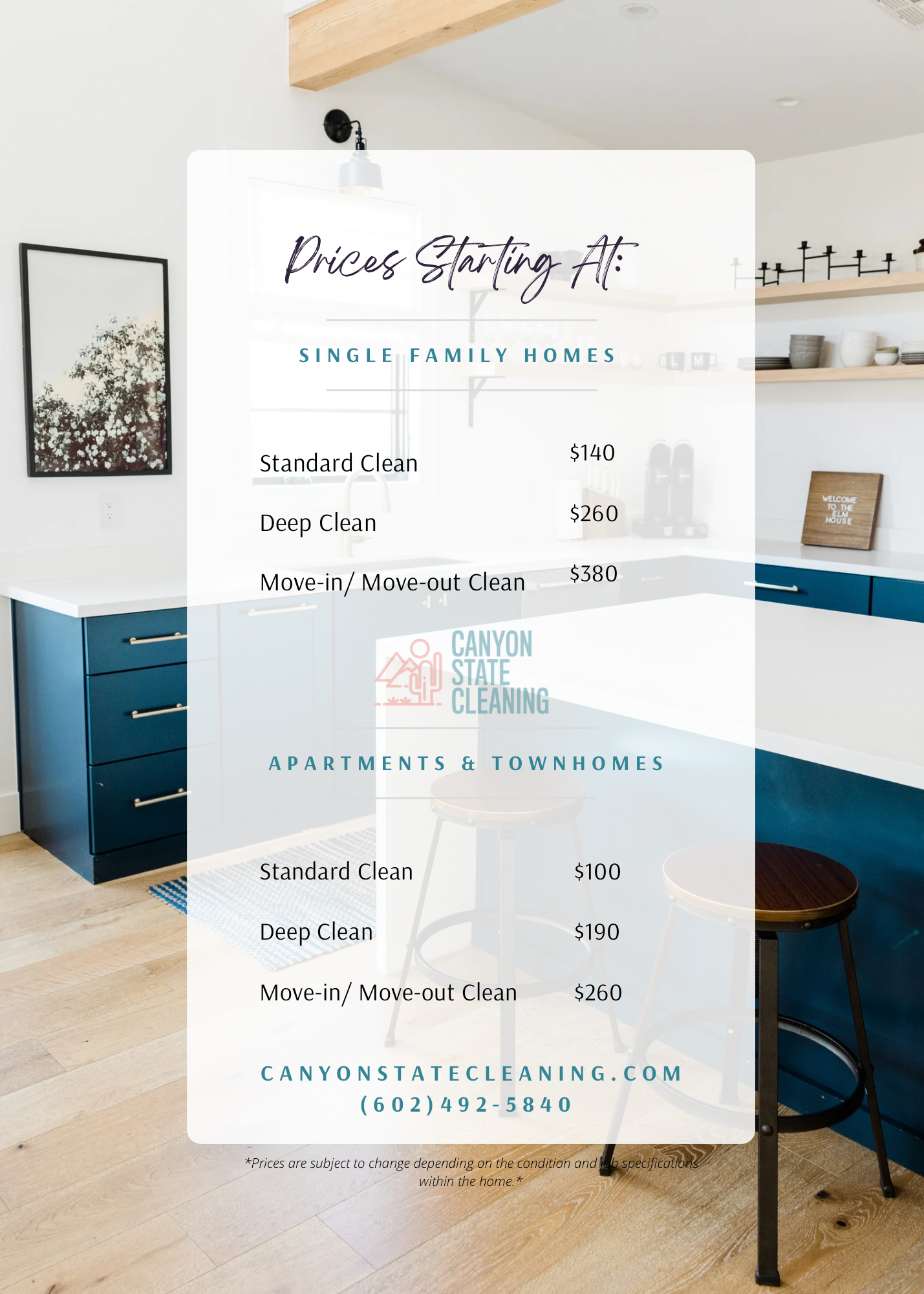 Canyon State Cleaning is a local woman-owned and operated business providing quality service to residential homes in the West Valley. Our cleaning services are tailored to your specific needs using professional grade, eco-friendly products. We specialize in doing the dirty work so you can spend more time living, and less time cleaning!